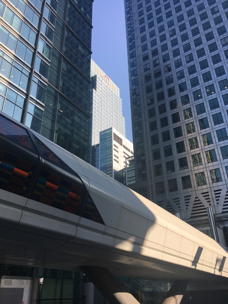 Thatcher’s children are all still there at Canary Wharf, represented by their sky-scraping buildings that look like devotional obelisks to the big illuminated banking names at their summits. At the moment they are mostly devoid of human life due to the corona virus, not that they had any soul when they were full. I actually felt the cold dead hand of the financial sector on my shoulder when I tried to take a picture of my reflection in the curved glass at the base of the HSBC building.