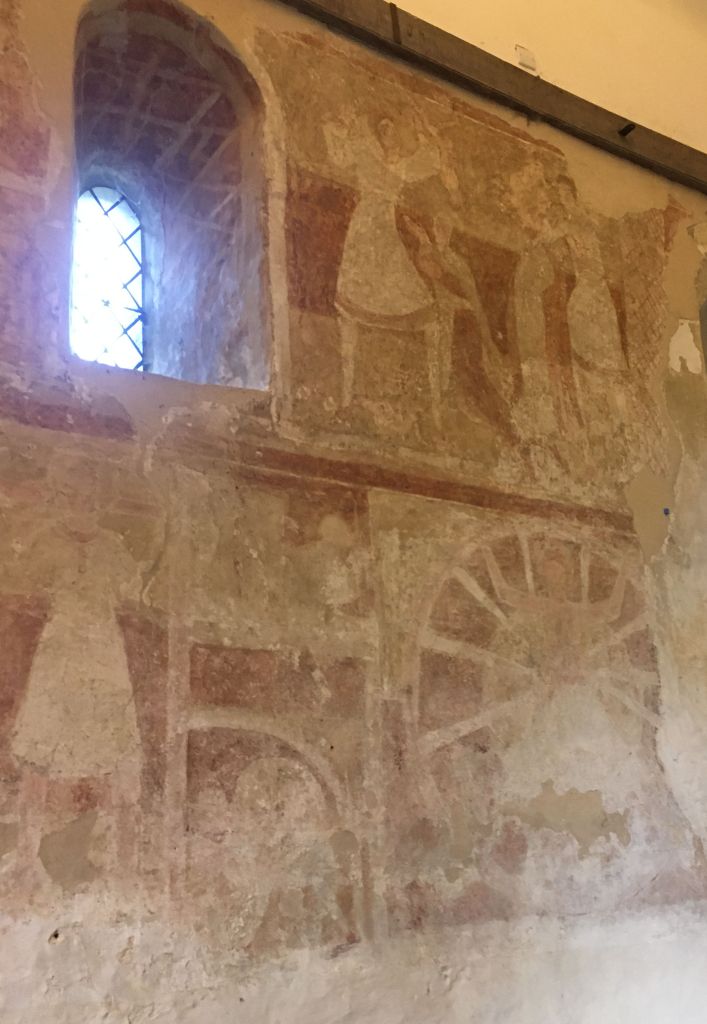 The frescos were plastered over in the reformation, when all trace of papish imagery had to be eradicated, but they began to be uncovered in Victorian times. Being plastered over is not the only reason they’ve lasted so long. They are frescoes, not paintings, which means the pigment is applied to damp plaster, so it becomes bonded to the fabric of the wall and won’t flake away like normal paint on a dry surface.