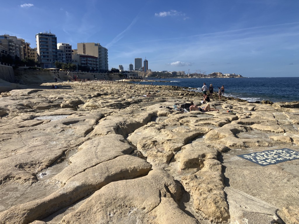 Gzira (over the water from Valletta). Basically, just a busy road with lots of hotels, restaurants, shops and bugger-all in the way of a beach, despite what your Airbnb apartment description may say (as I point out in my review of the apartment). The best thing about Gzira is getting away from it via the ferry to Valletta.