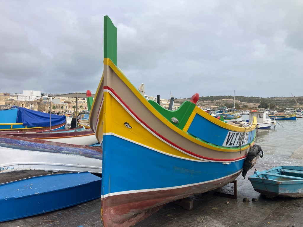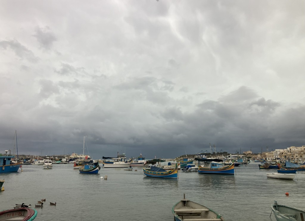 Marsaxlokk (which trades on being a traditional fishing village, maybe a hundred years ago it was). One stretch of harbour waterfront with numerous ‘seafood’ restaurants and even more numerous tourists. It does indeed have lots of boats, but then again so does Grimsby, and the fish is better.
